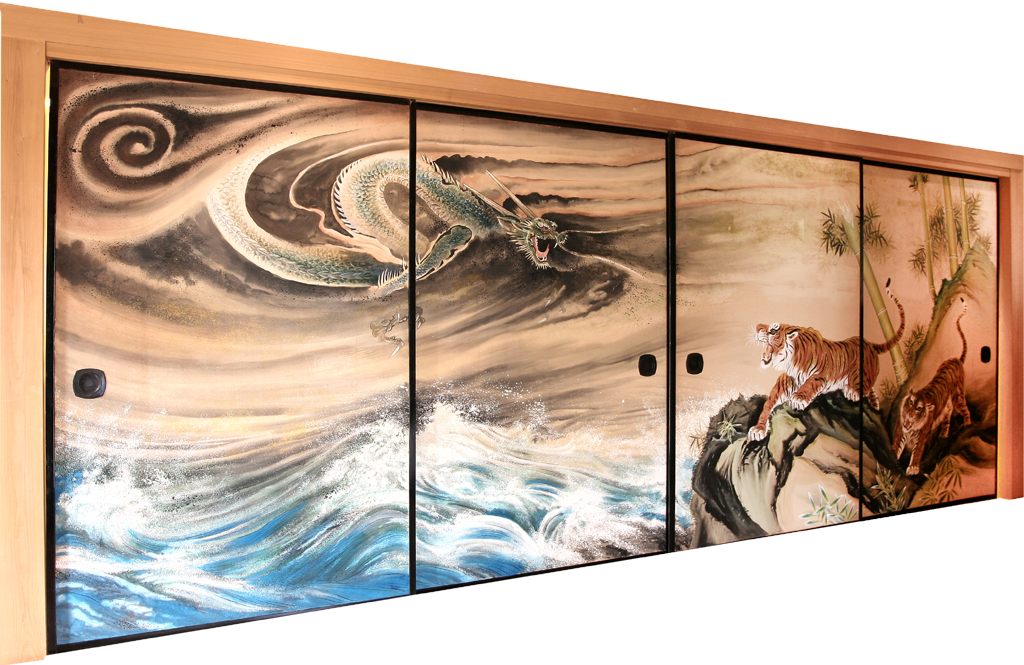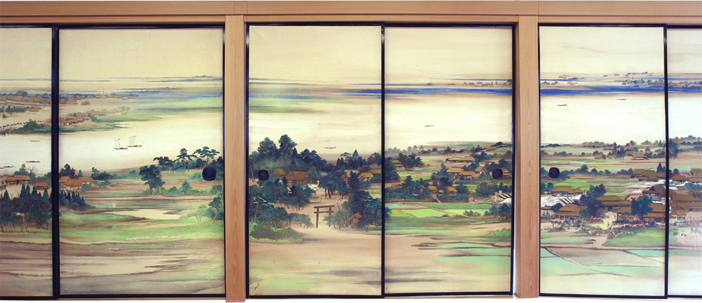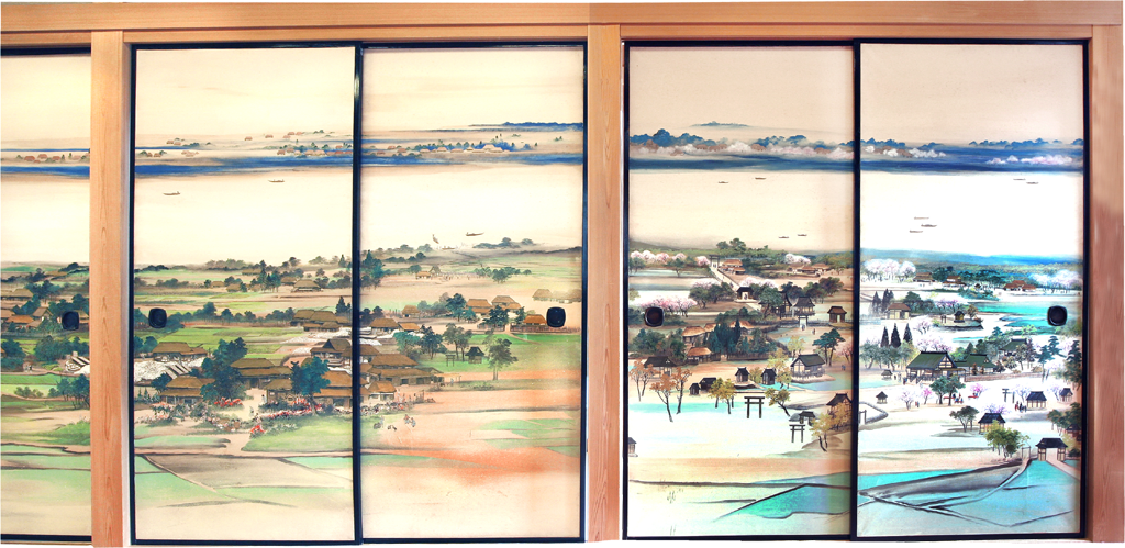 この襖絵の作者は当町にお住まいに成っていた若原天應画伯です。